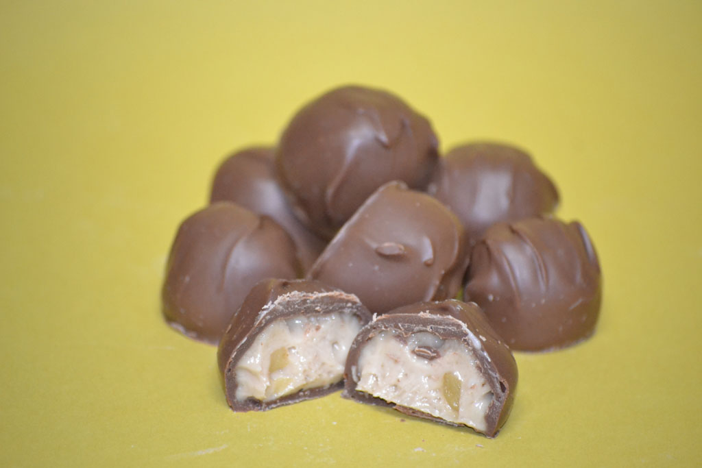 Heggy’s® Maple Cream (Milk Chocolate) candy A soft maple flavored cream center with finely chopped English Walnuts added.