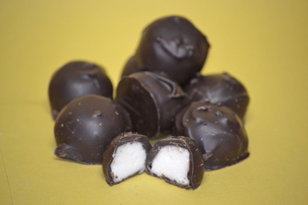 A dark chocolate coated cream center.