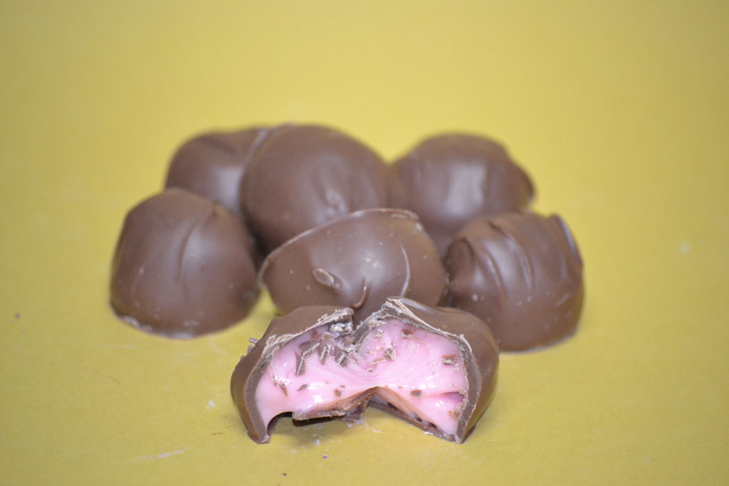 Heggy’s® Raspberry Cream (Milk Chocolate) candy Fresh red raspberry puree. Cooked and mixed to a creamy delight. Coated in milk chocolate.